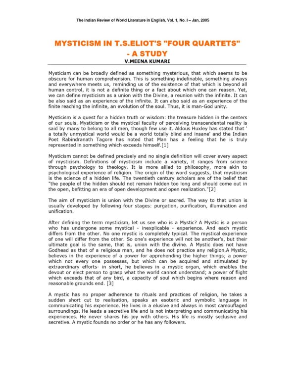 Mysticism in Four Quartets by T.S.Eliott,V.M.Kumari