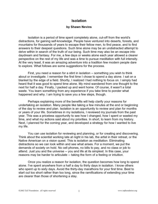 Nevins,Shawn,Isolation