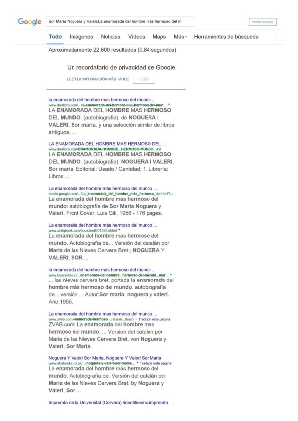 Noguera y Valeri,Sor Maria,La enamorada del hombre mas hermoso del mundo