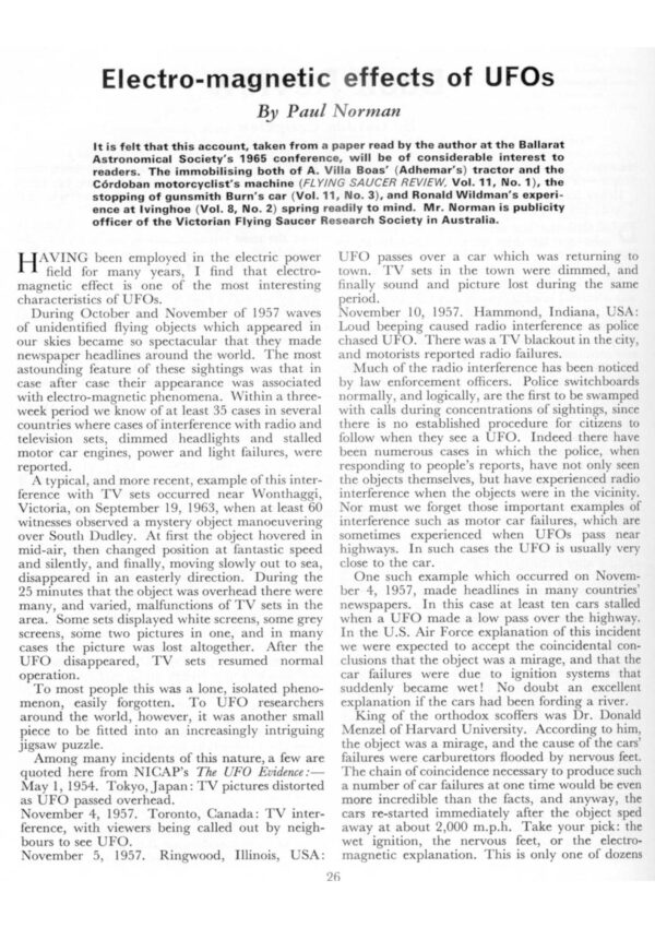 Norman,Electro-Magnetic Effects of UFOs,FSR65V11N5