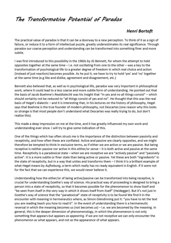 Paradox,its transformative potential,Henri Bortoft