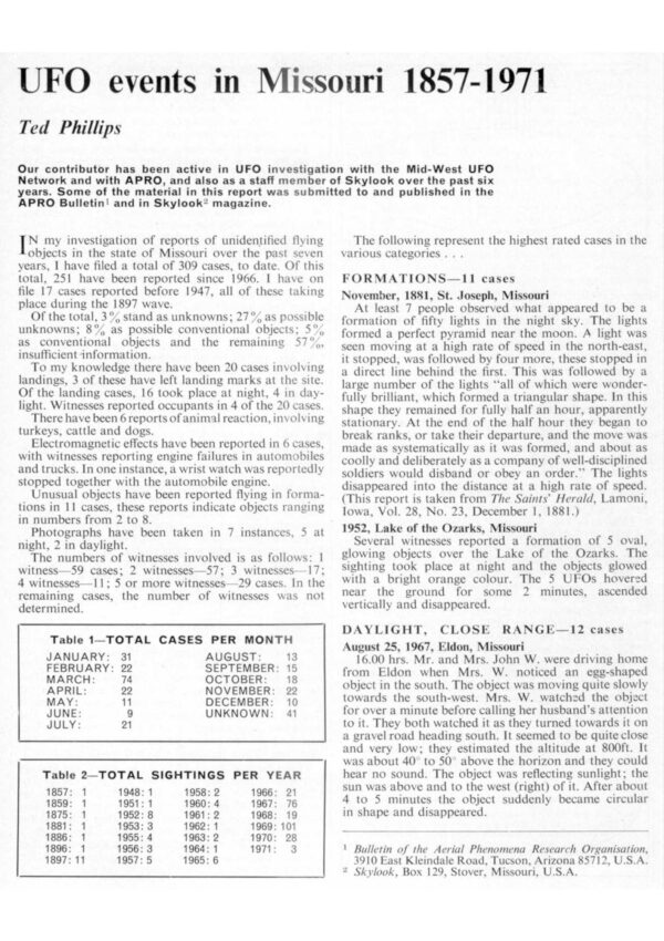 Phillips,UFOs 1857-1971,Missouri,FSR-CH 1971 N 8