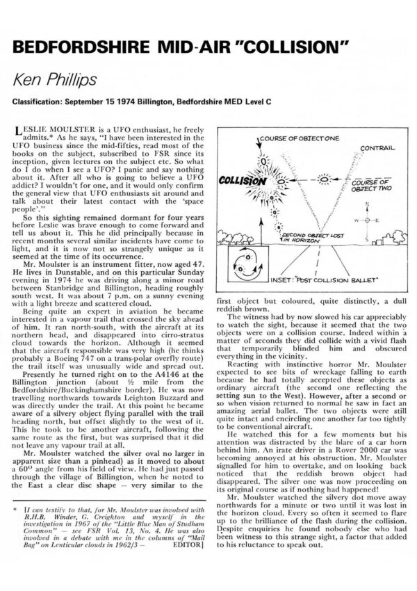 Phillis,UFOs Collision 1974,England,FSR79V24N6