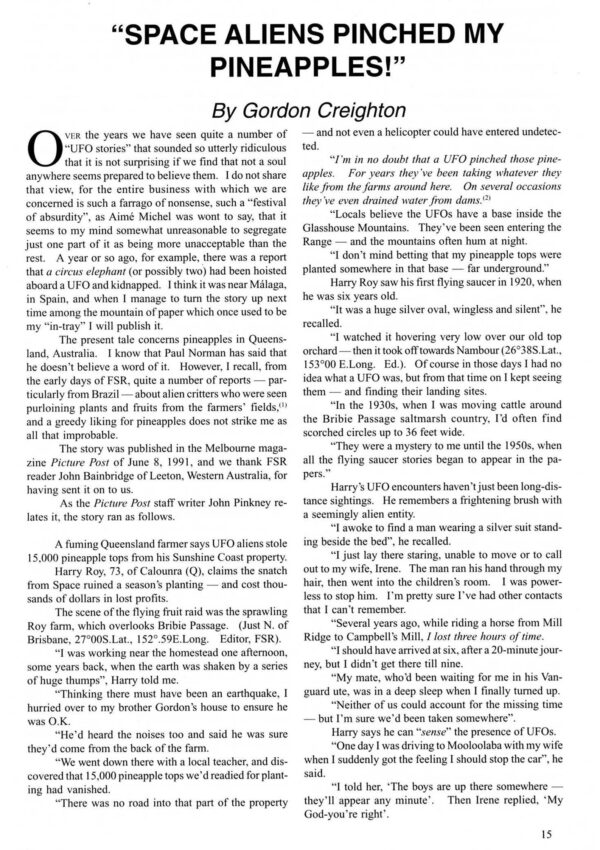 Pinkney,UFO 1980s stole 15,000 pineapples,Australia,FSR94V39N2