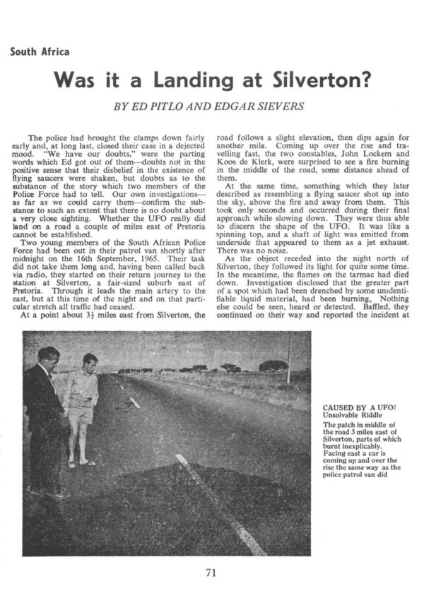 Pitlo-Sievers,Landing and fire 1965,South Africa,FSR-SI 1966 N 1,Humanoids