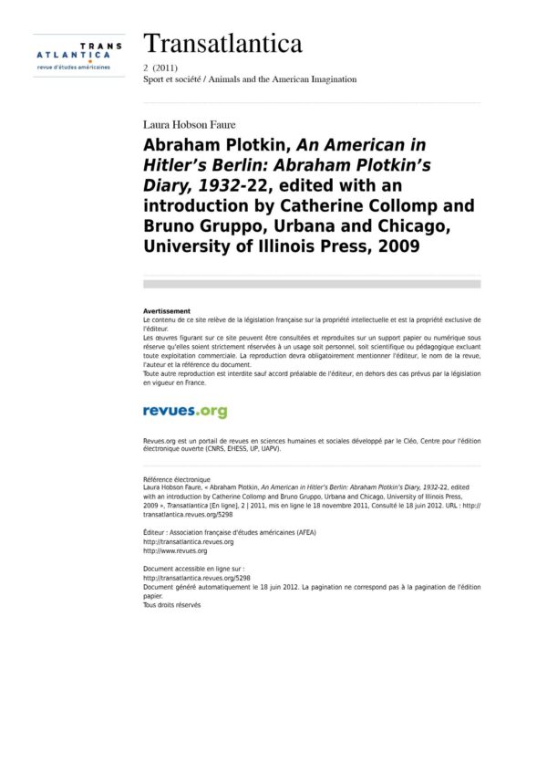 Plotkins,An American in Hitler s Berlin,Diary 1932,L.H.Faure