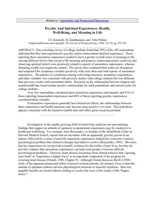 Psychic and spiritual experiences,J.E.Kennedy