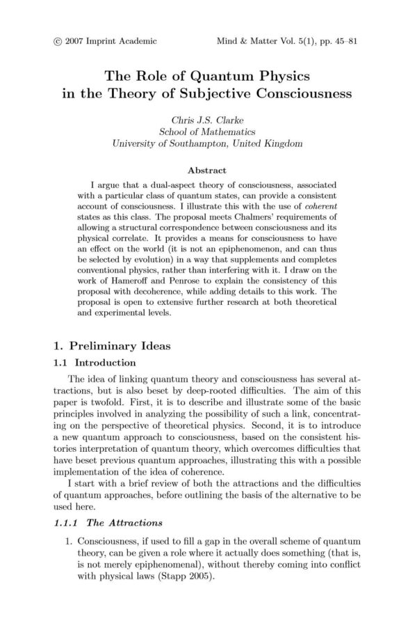 Quantum physics and subjective consciousness,C.J.S.Clarke