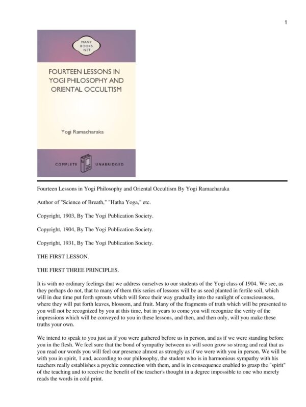 Ramacharaka,14 Lessons in Yogi Philosophy