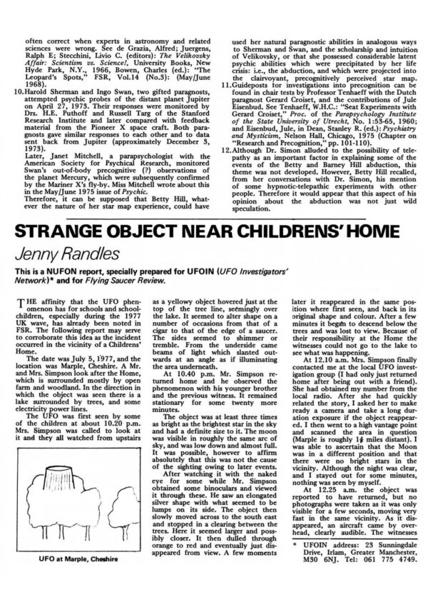 Randles,UFO 1977 near Children Home,England,FSR79V23N4