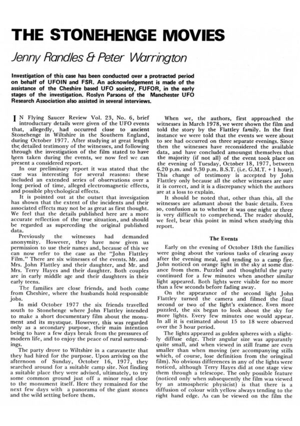 Randles,UFOs 1977,ancient Stonehenge,England,FSR78V24N4