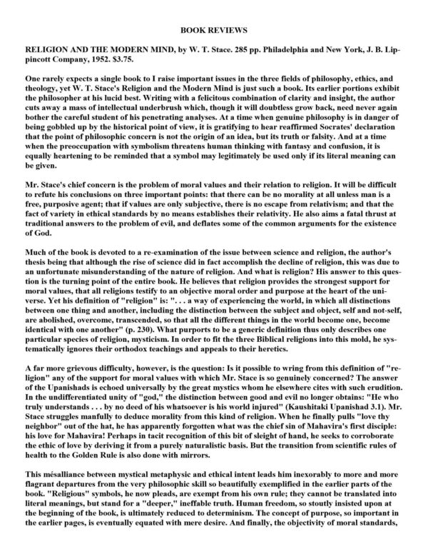 Religion and the modern mind,W.Stace,by E.L.B.Cherbonnier