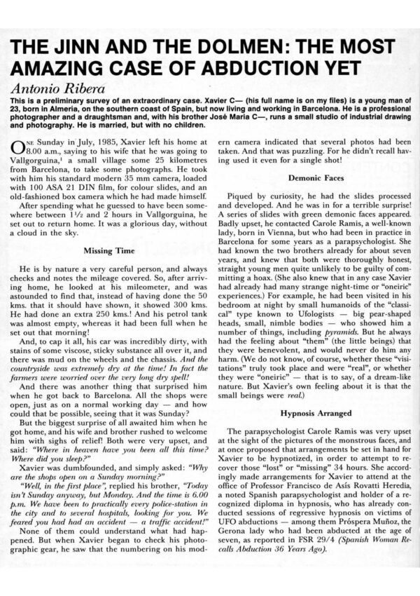 Ribera,Abduction 1985,Vallgorguina Dolmen,Spain,FSR86V31N4