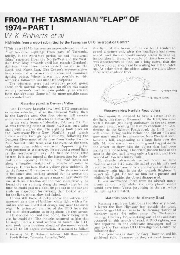Roberts,UFOs 1974,Tasmania,FSR75V21N3-4
