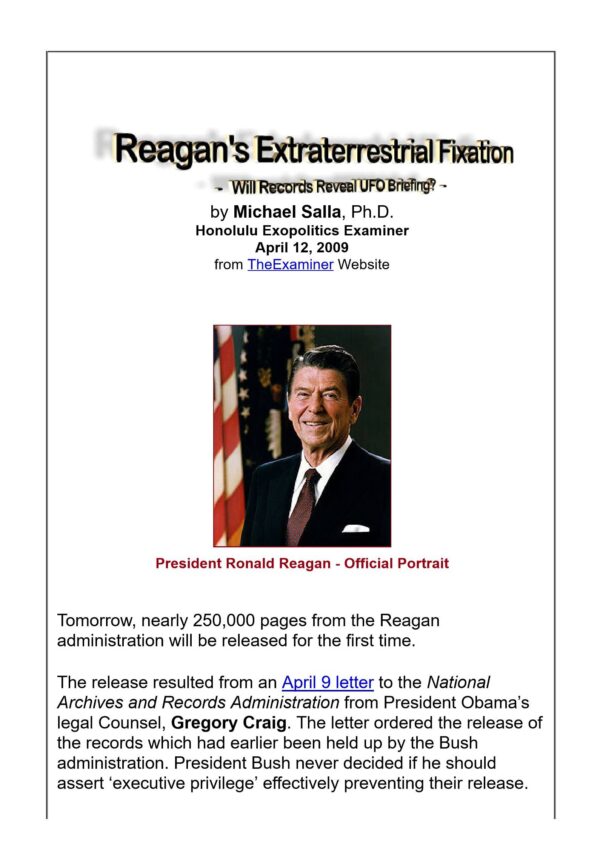 Ronald Reagan s extraterrestrial fixation,Michael Salla
