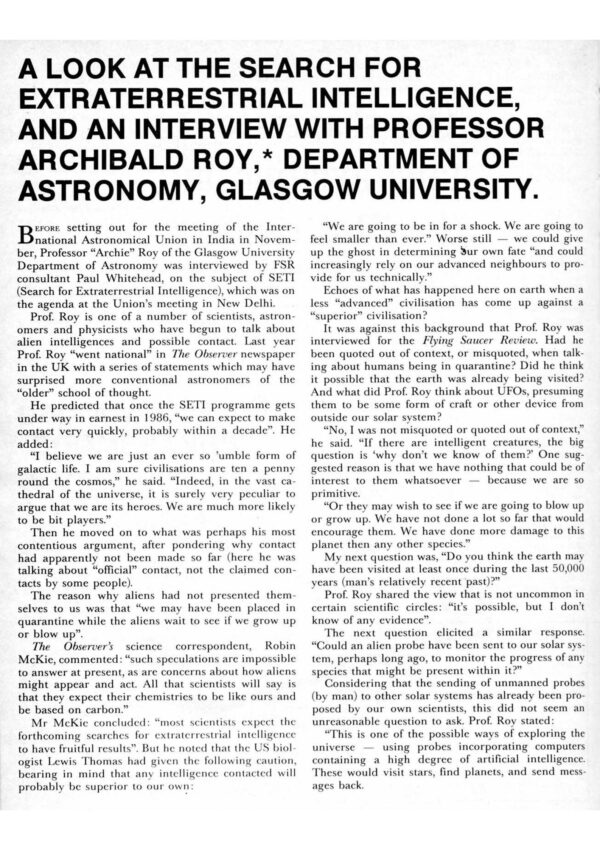 Roy,Search for Extraterrestrial Intelligence,FSR86V31N3