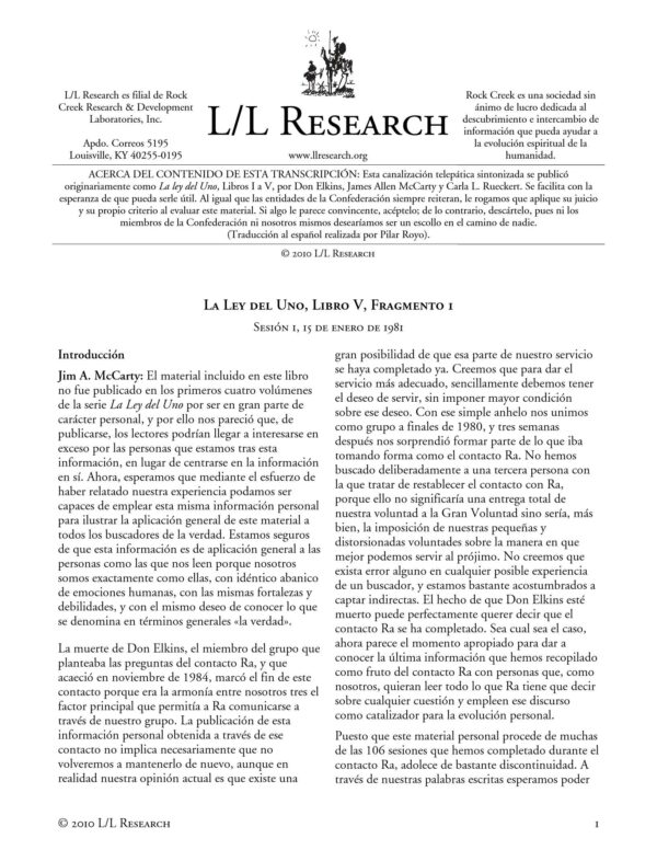 Rueckert,Material de Ra.Ley del Uno.Libro V