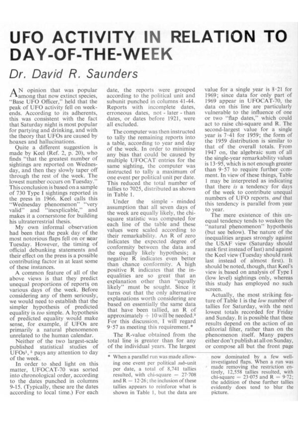 Saunders,UFO activity in day-of-the week,FSR71V17N1