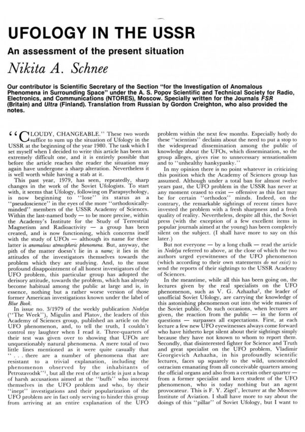 Schnee,Ufology in the USSR,FSR81V27N1
