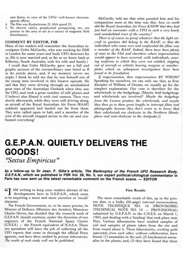 Sextus Empiricus,GEPAN delivers goods,FSR83V29N1