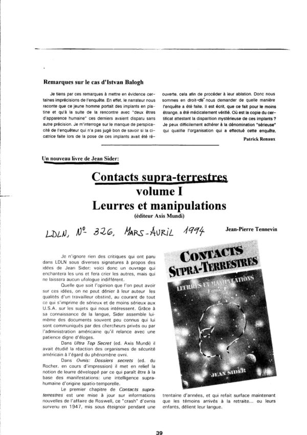 Sider,Contacts supra-terrestres,etc.