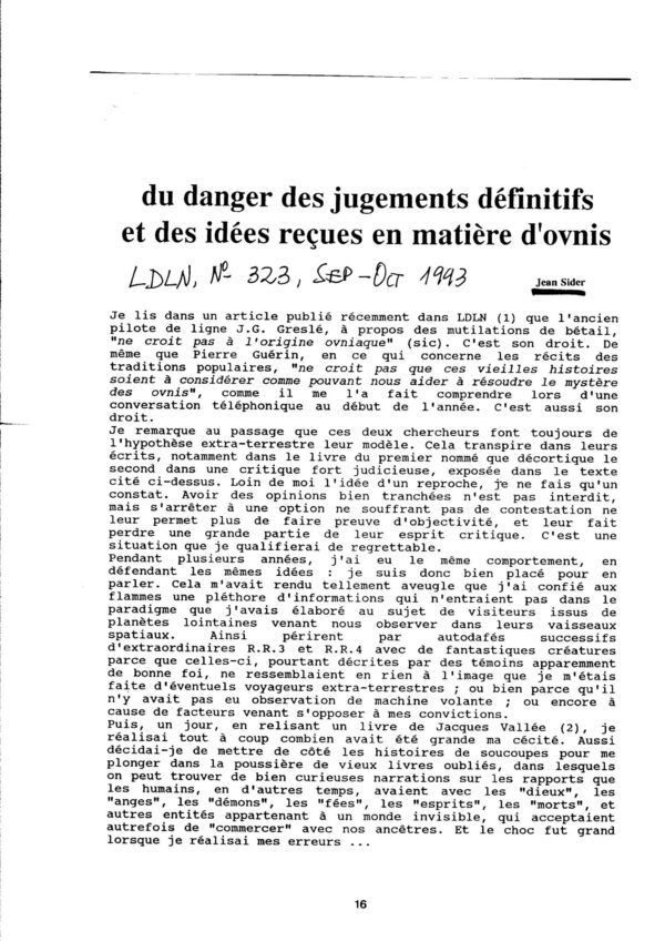 Sider,Danger des jugements definitifs des ovnis,etc.