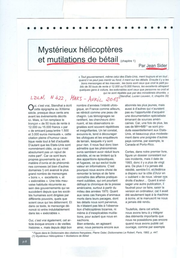 Sider,Jean,Mutilaciones de ganado y helicopteros