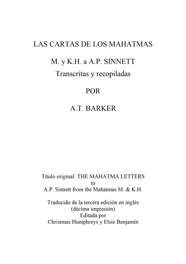 Sinnett,Cartas de los Mahatmas,A.T.Barker