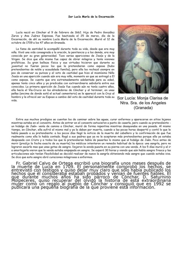 Sor Lucia Maria de la Encarnacion Conchar,Granada 1662-1709