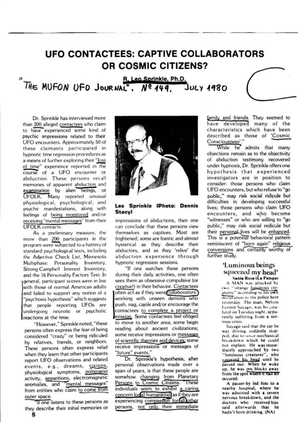 Sprinkle,UFO Contactees