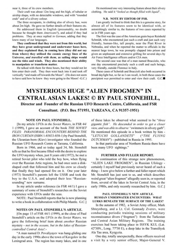 Stonehill,Alien Frogmen 1982,Siberian Lakes,FSR2001V46N1