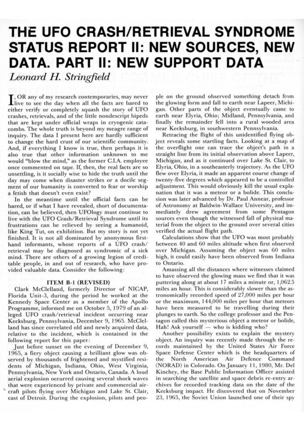 Stringfield,UFO Crash Retrievals,Status Report II-3,FSR83V28N4