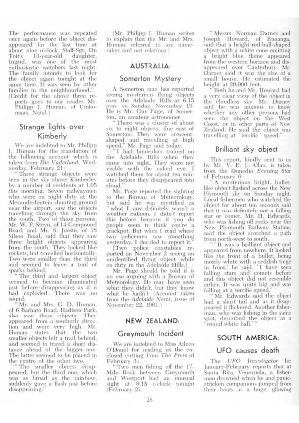 UFO 1961 causes death,Venezuela,FSR62V8N3