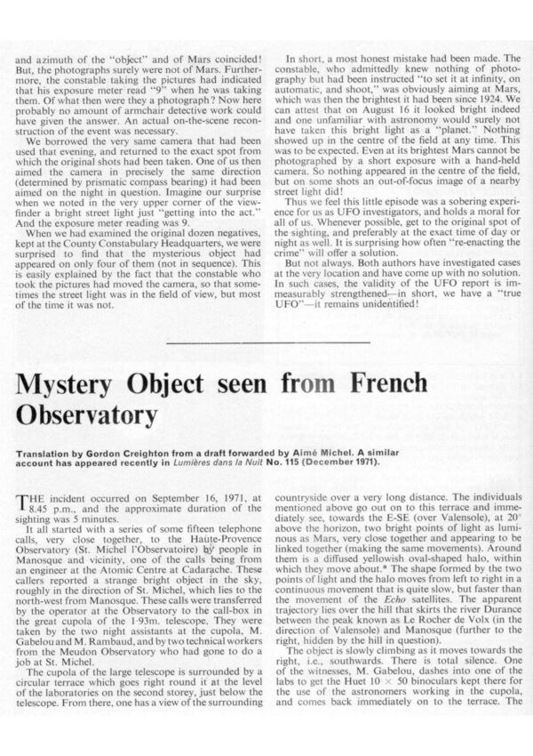 UFO 1971,France Observatory,FSR-CH 1972 N 9