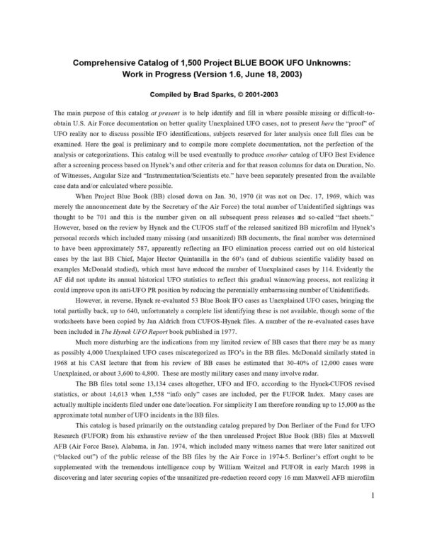 UFO Blue Book Reports,1.500 Cases,Sparks
