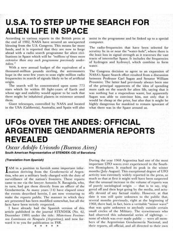 Uriondo,UFOs 1968,Andes,Argentina,FSR83V28N4