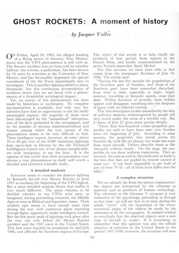 Vallee,Ghost Rockets 1946,Scandinavia,FSR64V10N4