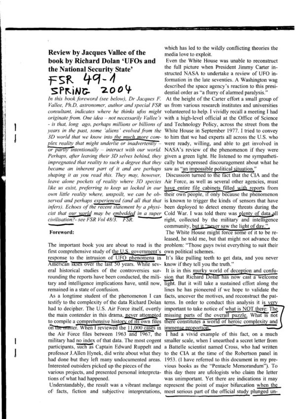 Vallee,UFOs and National security state,by R.Dolan,FSR2004V49N1